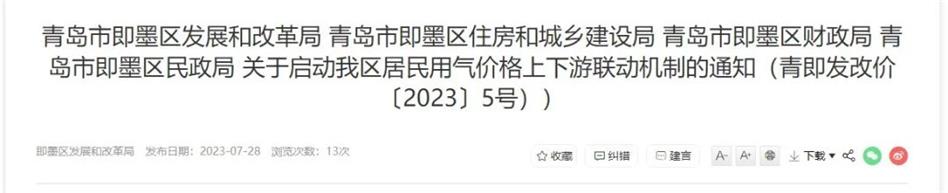 8月10日起執(zhí)行!即墨天然氣價(jià)格調(diào)整了!上調(diào)0.23元/m3