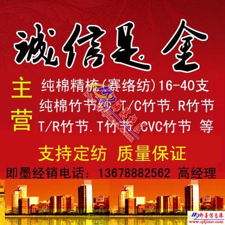 即墨針織棉紗銷售:純棉8s-40s竹節(jié)紗、點子紗、T/C、T/R、CVC、R等平紗系列。純棉精梳賽絡紡、T/C竹節(jié)、T/R竹節(jié)、CVC竹節(jié)、R竹節(jié)等針織用紗’歡迎即墨針織行業(yè)朋友洽談合作!