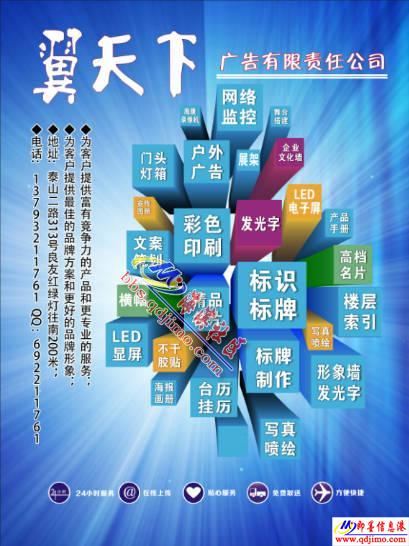 戶外廣告 標(biāo)示標(biāo)牌 形象墻 發(fā)光字 海報(bào)畫冊 不干膠 LED屏 寫真噴繪