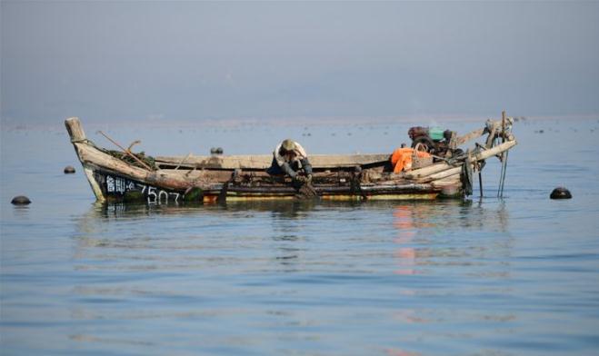 一條小船每天的捕撈作業(yè),都是由一個人完成。船靠岸后,還要從船上卸下這3000斤牡蠣運回家,絕對是個重體力活。