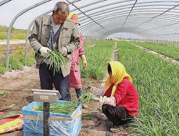 韭菜種植給靈山鎮(zhèn)帶來良好的經(jīng)濟(jì)效益,李前莊村、韓流莊村、西黃家莊村3個(gè)村莊村民靠此致富,同時(shí)每日100余農(nóng)村剩余勞動(dòng)力實(shí)現(xiàn)就近就業(yè)。60歲的仲偉彬就是其中之一,他將自家9畝2分土地流轉(zhuǎn)給合作社,一年可獲得7000余元的土地流轉(zhuǎn)費(fèi),平日在合作社打工,月收入3000余元!胺N了一輩子地,沒想到,老了還能靠它過上小康生活!敝賯ケ蚰樕蠏鞚M了笑容。