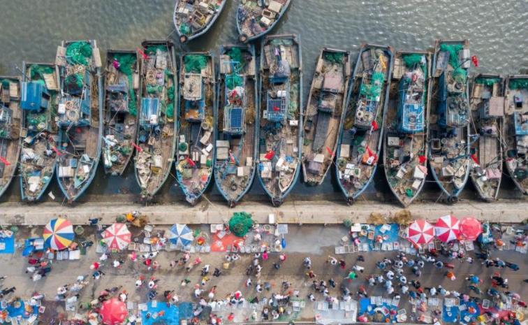休漁期結(jié)束,即墨區(qū)田橫鎮(zhèn)田橫島村、山東頭的幾百艘漁船拔錨出海,在闊別四個(gè)月的漁場(chǎng)作業(yè),收獲滿滿的魚蝦。