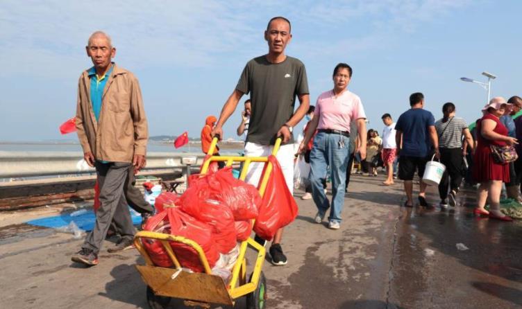 近海捕撈的漁民們都是凌晨出海,下午一點(diǎn)左右返港歸來。整座大橋擁堵的時(shí)間也自然會(huì)從下午一點(diǎn)左右一直持續(xù)到傍晚。漁民王師傅表示,出?刺鞖,一般一月出海能有十八天左右,橋上的熱鬧場(chǎng)面和擁堵也會(huì)至少持續(xù)這些天,這種場(chǎng)面已經(jīng)持續(xù)十多年了。