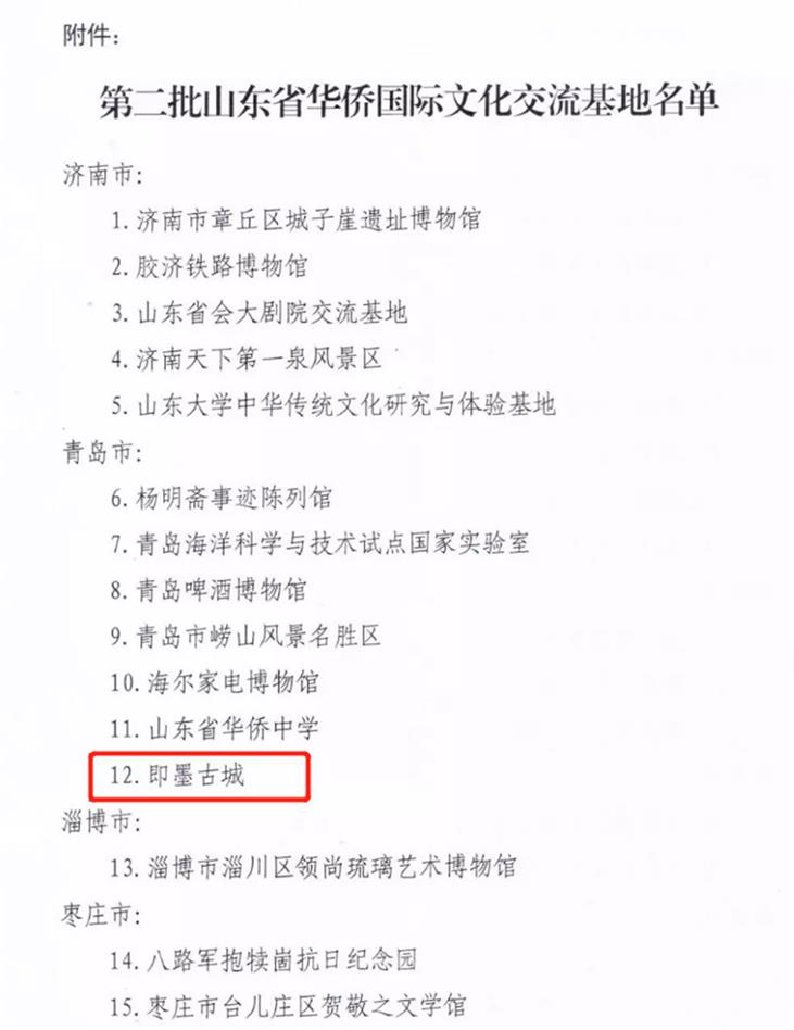 青島市即墨區(qū)即墨古城評(píng)選為山東省華僑國(guó)際文化交流基地