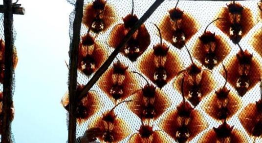 11月12日,山東省青島市即墨區(qū)鰲山衛(wèi)街道垛石村漁民在晾曬魚干。