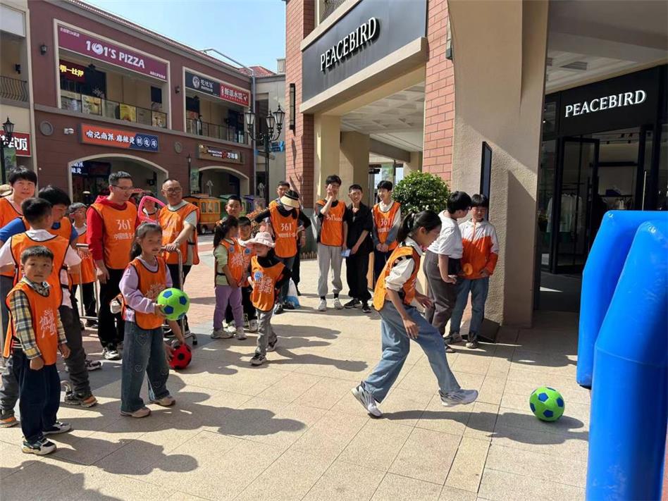 “加油加油!好球!”青島百聯(lián)奧特萊斯廣場(chǎng)內(nèi),一陣陣歡呼聲此起彼伏!白屛襾(lái)踢!”親子足球比賽場(chǎng)上,一位小朋友高興地喊道。