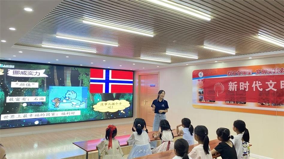在課程中,劉老師首先通過提問的方式,吸引孩子們對故事內(nèi)容的興趣,接著詳細介紹了故事作者的生平、風(fēng)格及代表作,并對作者的家鄉(xiāng)挪威和故事的主角鴨子的相關(guān)信息進行了拓展延伸,最后在老師的引領(lǐng)下,孩子們對故事內(nèi)容有了更深入的理解。