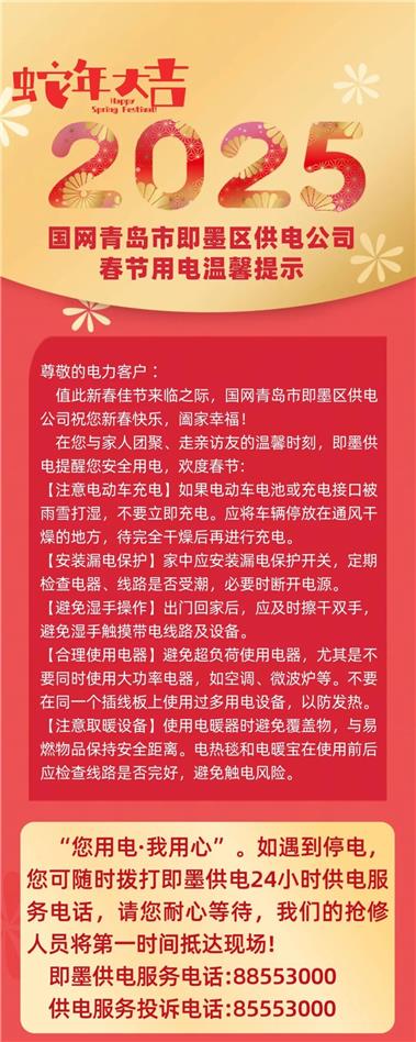 國網(wǎng)青島市即墨區(qū)供電公司春節(jié)用電溫馨提示
