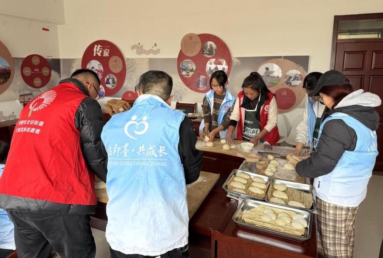 活動(dòng)當(dāng)天,協(xié)會(huì)藝術(shù)顧問(wèn)們揮毫潑墨,用飽含深情的筆觸,為殘疾人書寫了一副副充滿祝福的福字和新春對(duì)聯(lián)。村莊志愿者和家屬們也不甘落后,他們自己和面,發(fā)酵、造型,在大家的共同努力下,一個(gè)個(gè)栩栩如生的魚花、元寶等多種形狀的花饃,在男女老少的靈巧雙手下,躍然呈現(xiàn)于案板之上。