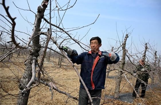 在移風(fēng)店鎮(zhèn)青中埠村的一處蘋果園里,園主人姜相平正手拿短鋸、電剪為果樹“美容”。他時(shí)而爬上梯子,時(shí)而站在田間,雙手相互配合,在一聲聲咔嚓咔嚓聲中,多余的枝條被剪掉,果樹被修剪得疏密適宜、錯(cuò)落有致,一棵棵果樹換了新顏。