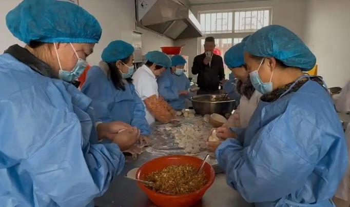 與此同時(shí),村莊愛(ài)心食堂里也是一片忙碌的景象。志愿者們分工合作,洗菜、切菜、揉面……大家忙得不亦樂(lè)乎,為村內(nèi)高齡老人準(zhǔn)備豐盛的免費(fèi)午餐,F(xiàn)場(chǎng)手工制作的大包子陸續(xù)出鍋,熱氣騰騰的蘑菇湯剛一上桌,濃郁的香氣便撲面而來(lái)。志愿者們將一份份愛(ài)心午餐裝盤(pán),送到老人們手中,并親切地與他們拉家常,志愿者肖悅芳是一名推拿理療師,現(xiàn)場(chǎng)為有腰腿疼毛病的老人免費(fèi)診療。
