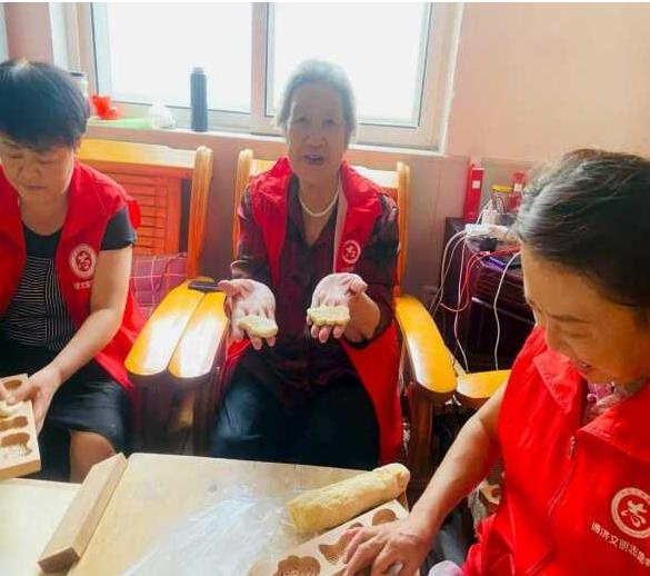活動現(xiàn)場,工作人員提前準備好面團、巧果模子、白糖、花生等材料。隨后大家圍坐在一起,一邊動手制作巧果,一邊暢談各自記憶中的七夕故事,場面溫馨熱烈。只見大家將揉好的一塊塊面團,填入模子的凹處,壓平、壓實,最后拿起模具,翻轉(zhuǎn)過來,在面板上輕輕一磕,一個個帶有不同形狀、充滿美好寓意的巧果就做好了。巧果出爐后,大家品嘗著自己親手做的巧果瞬間滿口留香?諝庵屑扔忻纥c的甜香,更彌漫著濃濃的人情味。