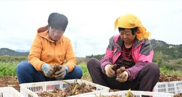 即墨區(qū)鰲山衛(wèi)街道姜家白廟村的農(nóng)民在地里清理芋頭的泥土。(來源:即墨區(qū)委宣傳部)