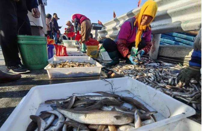 剛上岸的梭子蟹揮舞著粗壯的螯足,青灰色的外殼上還沾著海底的泥沙和未干的海水;筆管通體透明,身體鼓鼓的,剛離開海水還在微微蠕動(dòng);蝦虎則蜷縮著身體,青色的外殼上帶著深淺不一的斑紋;還有肥美的西施舌、小巧的鼓眼魚、銀光閃閃的小雜魚等,一筐筐新鮮的海貨在碼頭上鋪展開來,瞬間點(diǎn)燃了等候人群的熱情。