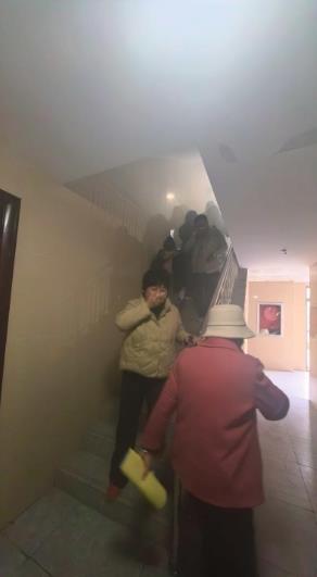 最后開展的是模擬疏散通道逃生環(huán)節(jié)。隨著“火情警報”響起,模擬居民樓著火場景正式啟動。在物業(yè)工作人員的引導下,居民們用濕毛巾捂住口鼻,彎腰低姿,沿著預定疏散路線快速、有序地撤離至安全區(qū)域。整個逃生過程緊張有序,大家嚴格遵循逃生規(guī)范,展現(xiàn)了良好的應急反應能力。隨后,消防員迅速啟動滅火處置程序,熟練操作消防設備對著火點進行模擬撲救,專業(yè)的處置流程讓居民真切感受到消防救援的速度與力量。