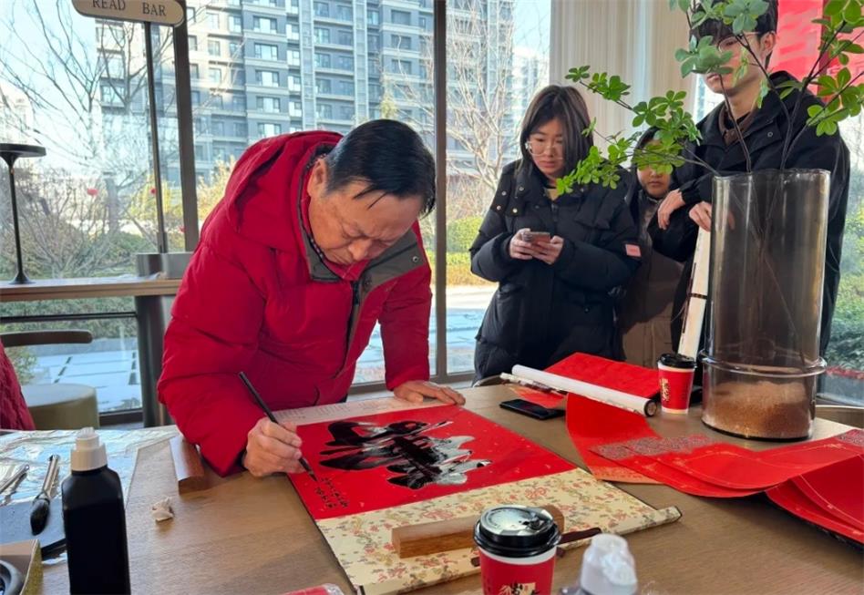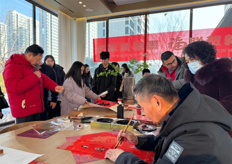 隨著一幅幅作品完成,活動(dòng)現(xiàn)場(chǎng)變成了紅色的海洋。居民們手持春聯(lián)和福字,相互欣賞、交流,社區(qū)里洋溢著濃濃的年味和鄰里溫情。
