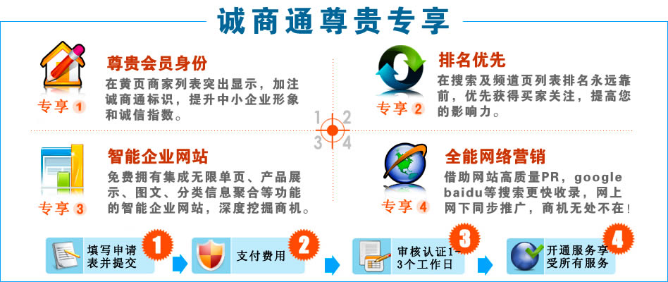 誠(chéng)商通服務(wù)是即墨信息港為即墨本地中小企業(yè)用戶提供網(wǎng)上做生意、結(jié)交商友的貿(mào)易平臺(tái)。依托即墨信息港、龐大專業(yè)的買家群體和全方位的本地化推廣,中小企業(yè)可以借助"誠(chéng)商通"獲得多重商機(jī),領(lǐng)先對(duì)手!